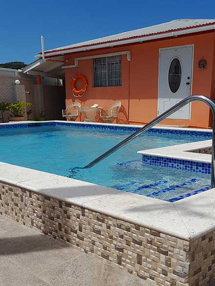 Well maintained guest accommodations with pool in the Bon Accord/Crown Point area. Units are self contained and include three bedroom, two bedroom, studio and bedroom loft. Amenities includes laundry facilities, on-site parking, AC, WiFi, Pool, Dedicated customer service agent, online souvenir shop and housekeeping. Services include airport transfer and breakfast on request.