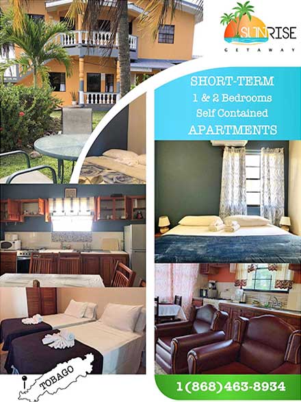 A home away from home experience awaits you at Sunrise Getaway, located at Feeder Road Canaan. Sunrise Getaway has a fenced property with electronic gate, spacious parking and self contained rooms. A friendly staff is ready to greet you and ensure that you enjoy a relaxing stay. You will love this property for its natural lush surroundings and affordable pricing. A deposit on all reservations for your stay is required and this confirms your booking. We are proud to say that Tobago has such a rich and vibrant history. Come learn about our island while you bask in the glory of this refreshing, tropical beauty - Learning has never been so tasty, relaxing and fun. The property is 10 minutes away from airport and beaches. We await your arrival, here at your home in Tobago.