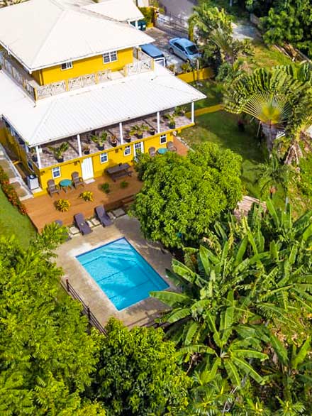 Hibiscus Heights is a colonial-style villa with pool, overlooking Grafton Beach, available as a vacation villa or individual self contained apartments, at affordable rates. Set on an old plantation ridge, with fabulous north west views of the Caribbean Sea, located steps away from Grafton Beach, and a stone’s throw from all the amenities in the village of Pleasant Prospect; restaurants, bars, grocery, ice-cream parlour and ATM kiosk. Choose from our five, fully furnished self catering apartments or cottage, to create your perfect island vacation! A/C, WIFI, TV, Netflix, airport pick up included. Car rental available on site.